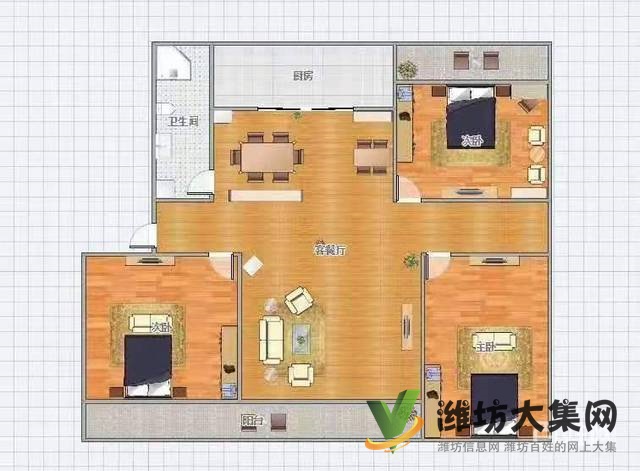 潍坊学院南邻,带电梯,116平,精装的很..