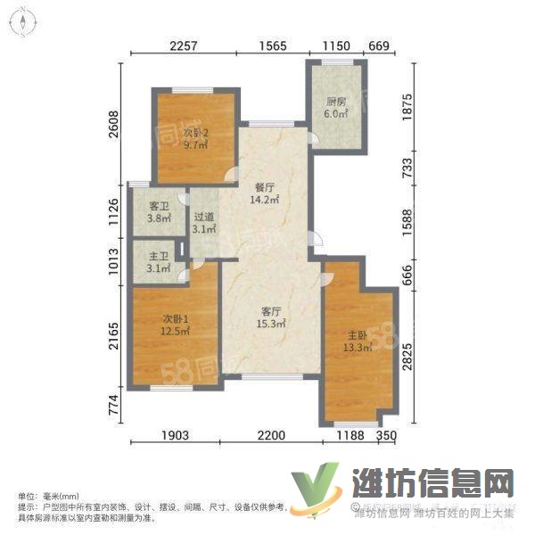 潍坊学院南邻,带电梯,116平,精装的很..