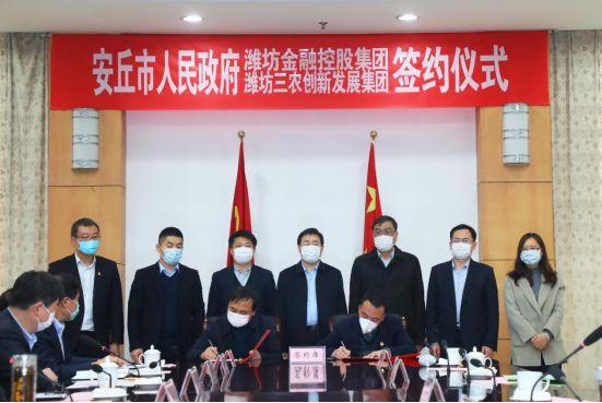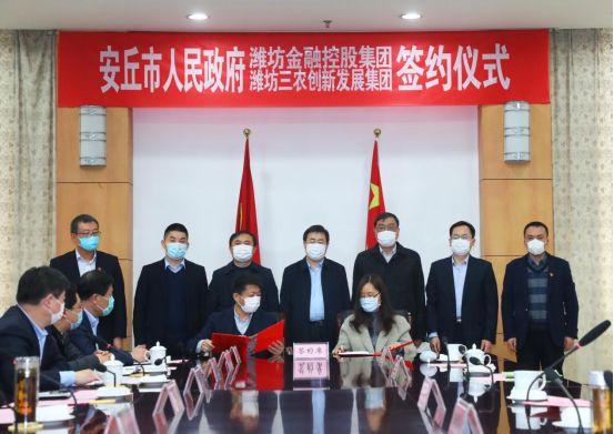 3月6日下午,潍坊市金融控股集团、潍坊三农创新发展集团与安丘市人民政府战略合作框架协议签约仪式在安丘举行。安丘市委、市政府,潍坊市金控集团,潍坊农创集团相关领导出席仪式。同时,双方代表分别与安丘市人民