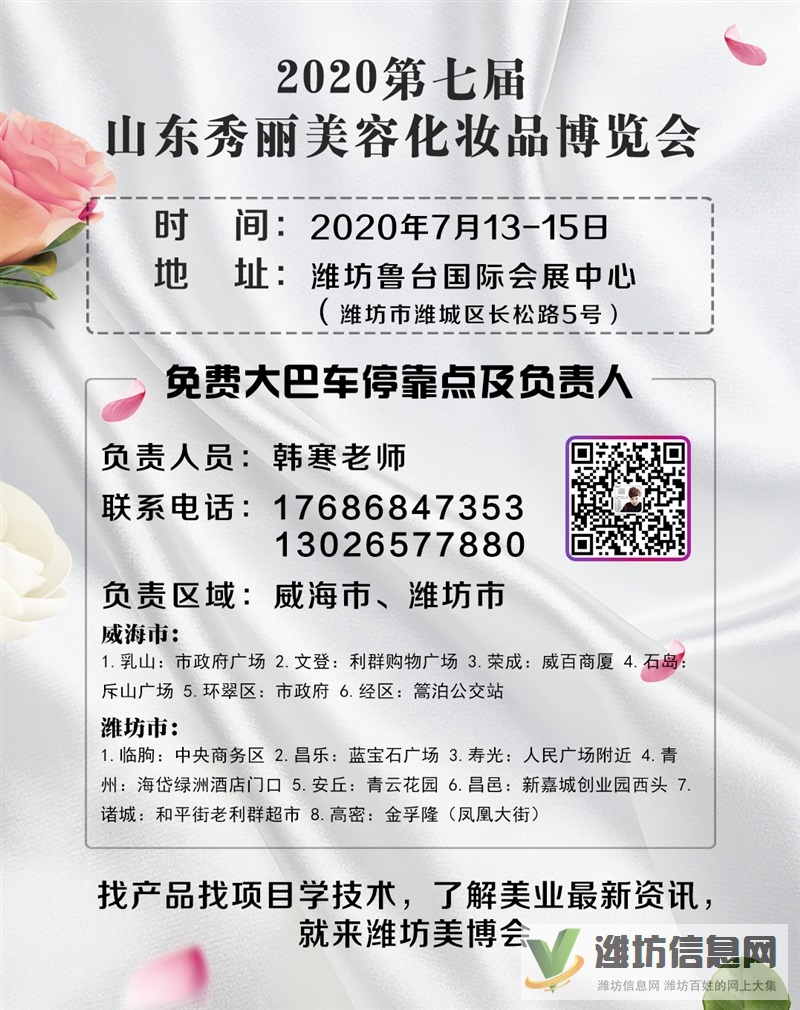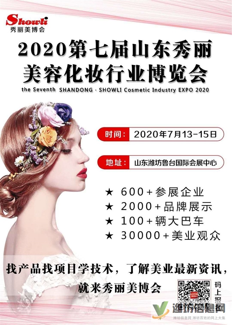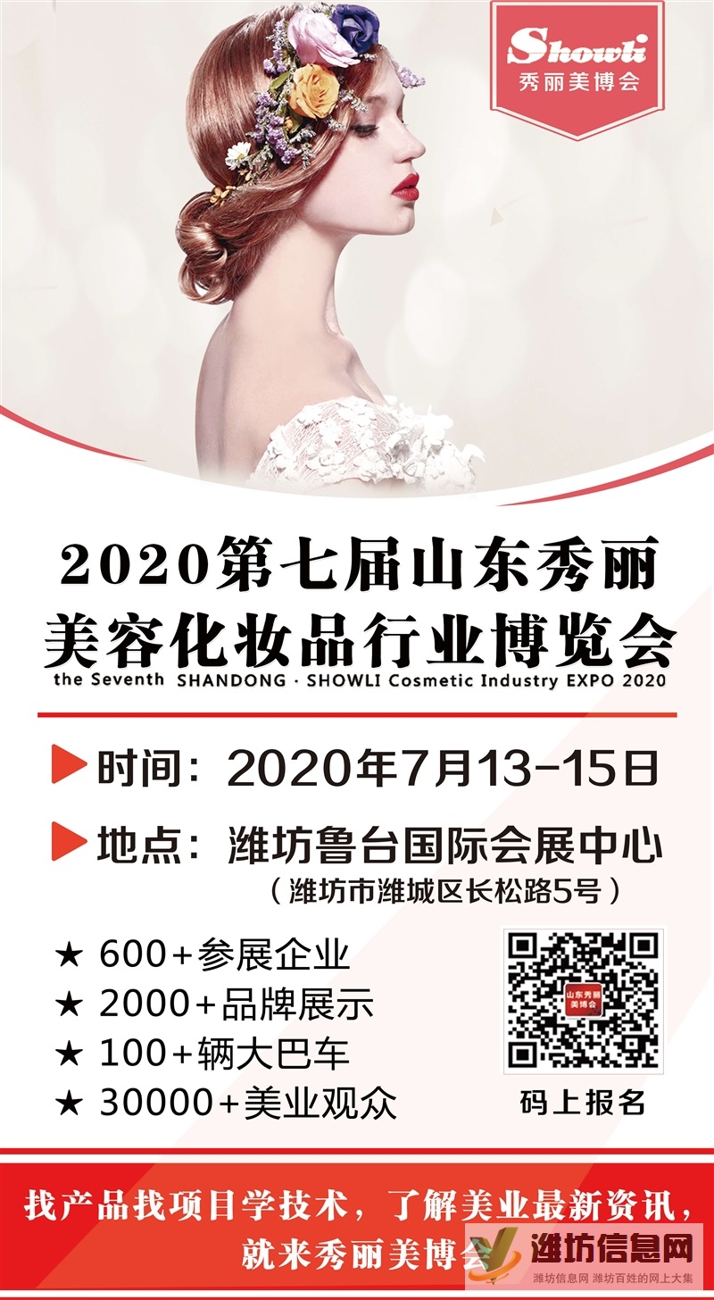 山东秀丽春季美博会,7.13-15日潍坊市潍城区鲁台国际会展中心举办,600+美业厂家、4000+品牌项目展览,山东省全省免费大巴车接送,提前报名免费提供住宿,参观热线:17686847353韩寒