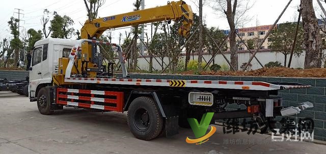 东风天锦带吊清障车,型号:SCS5161TQZDFL东风天锦底盘,豪华驾驶室,康明斯180马力,小八档变速箱,5米(4.7米)轴距,加强型大梁,900钢丝胎,原装空调,ABS,中控,电动玻璃,选装徐工6.3吨直臂吊或折叠臂吊机,5mm花纹板,平板长6.5米(6.2米),加强型后托臂,加粗油缸,双侧联动操作装置,4吨液压绞盘(25米钢丝绳),辅助小车一对,七字抱胎装置一套,捆绑带4条,轮胎挡板一对,工具箱一个,后工作灯两只。 我公司专业生产2-35吨各品牌随车吊,吊机有徐工牌、石煤牌、三一牌、宏昌天马、古河、程力牌、腾宇牌。底盘有东风、解放、福田、重汽、江淮、大运等各大品牌。欢迎新老客户前来本公司参观选购!更多车型配置可来电咨询~