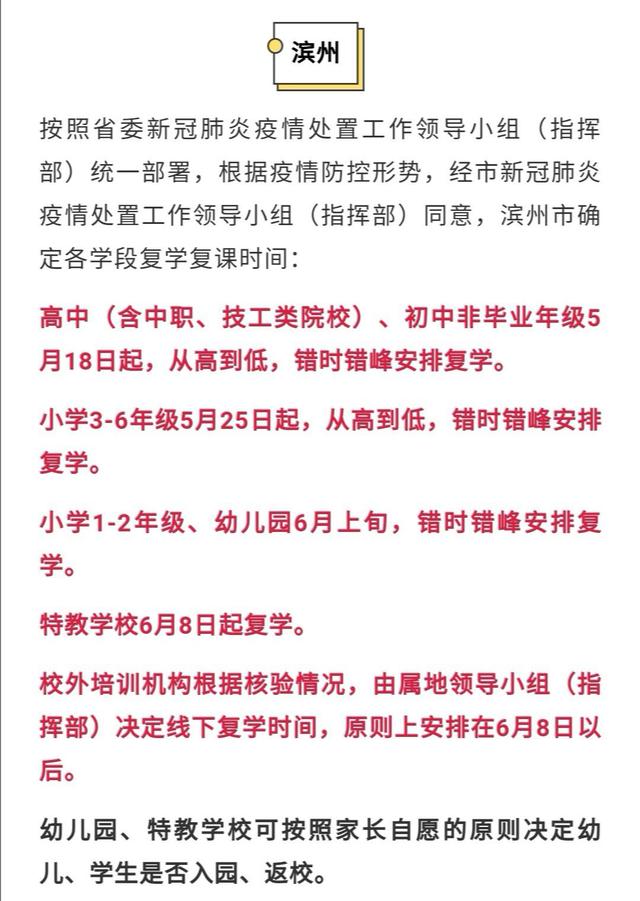 滨州市明确开学时间