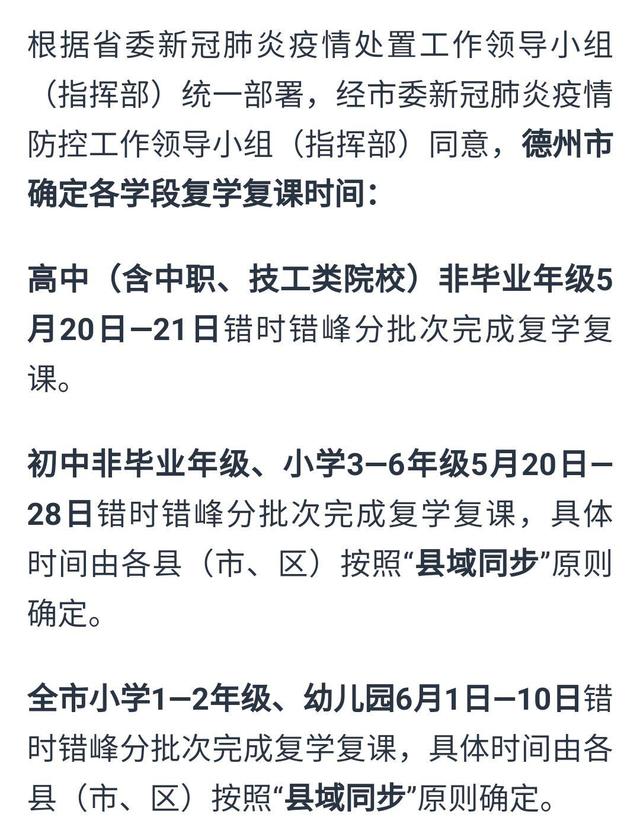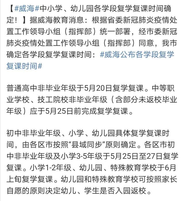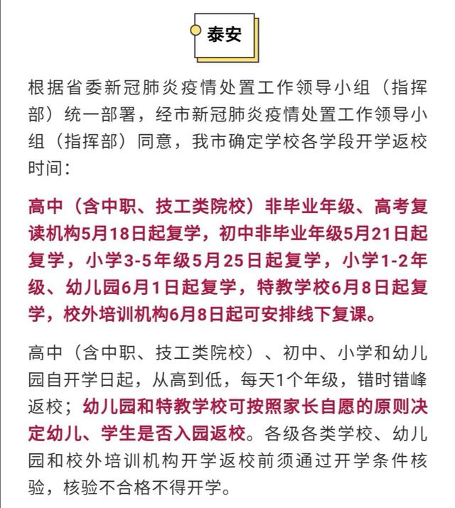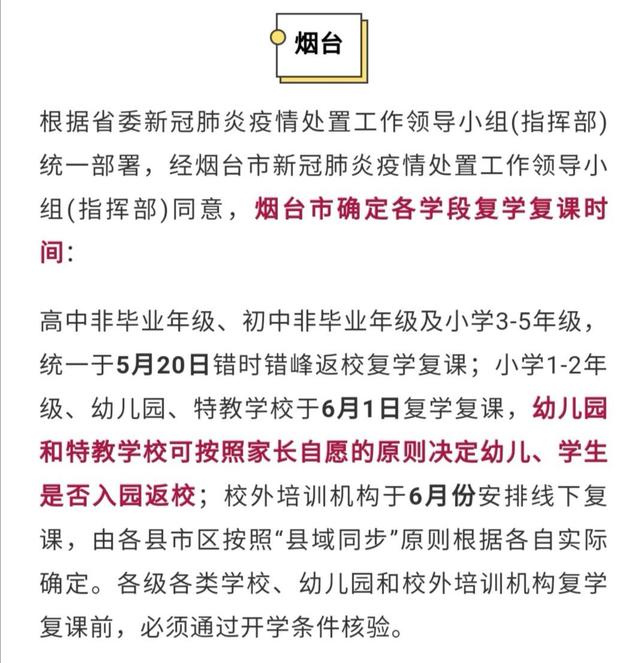 最新!济南、青岛、潍坊、烟台等十几个城市明确各学段学生开学