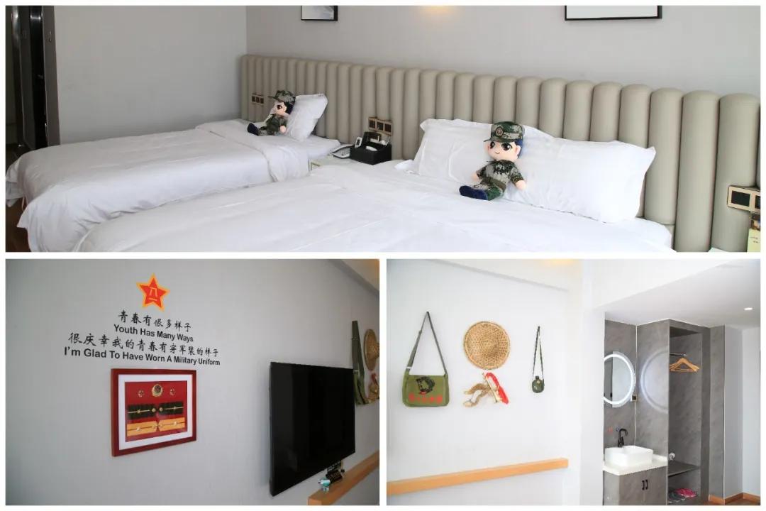每家“军人驿站”将提供4个房间为现役军人提供免费入住政策,来潍探亲休假、短期出差、旅居的现役军人凭身份证及现役军人有效证件可在“军人驿站”免费入住3天,配偶可凭结婚证随行入住。此外,“军人驿站”所有房间将为退役军人提供优惠,凭身份证及退役军人有效证件入住即可享受7折优惠。为充分彰显“军的特色”,酒店为军人军属和退役军人提供的房间里处处都体现着浓浓的爱军尚武情怀,墙壁上悬挂张贴了富有时代特色的国防元素和双拥挂画,添置了富有军队气息的物品摆件。