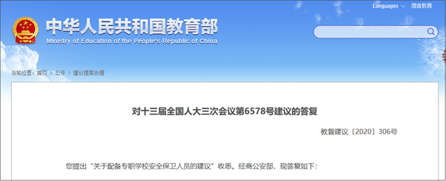 教育部最新回复!2021年底前所有中小学幼儿园专职保安员配备率要达到100%!专职保安员配备率要达到100%教育部近日在“关于配备专职学校安全保卫人员的建议”答复中明确,为切实提升中小学幼儿园安全防范