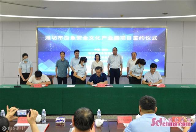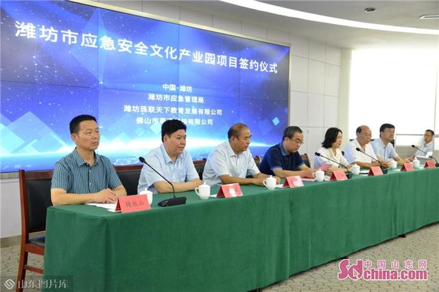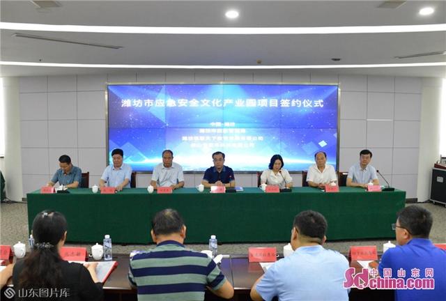 中国山东网-感知山东8月10日讯 日前,潍坊市应急安全文化产业园项目签约仪式在润世酒店举行。潍坊市应急局党委书记、局长李鹏,奎文区政府党组成员胡军章,潍坊恒建集团董事长朱兰冉,潍坊珠联天下教