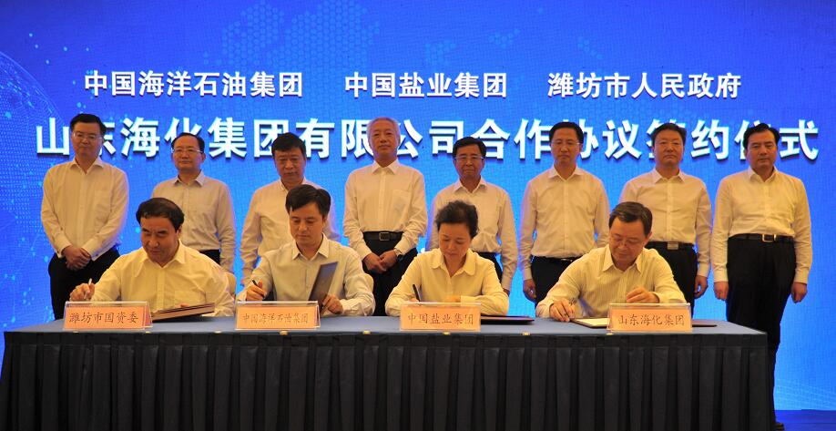中国海油划转持有山东海化集团全部股权 中化新网讯 8月12日,中国海洋石油集团与潍坊市人民政府、中国盐业集团在潍坊签署山东海化集团合作协议。协议约定,中海石油炼化有限责任公司将其持有的海化集团74.