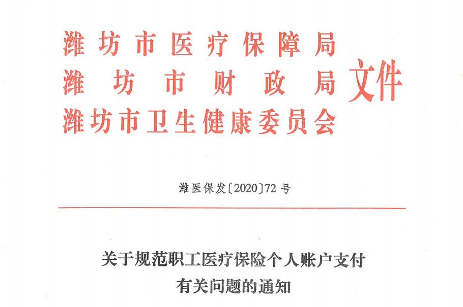 近日,潍坊市医疗保障局潍坊市财政局、潍坊市卫生健康委员会联合下发《关于规范职工医疗保险个人账户支付有关问题的通知》对职工个人账户资金使用范围和支付范围进行明确规定为加强潍坊市职工基本医疗保险个人账户管