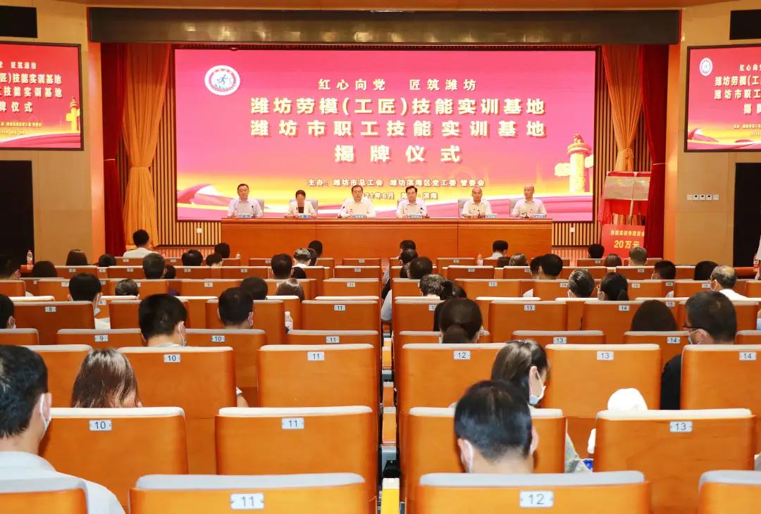 6月11日上午,潍坊劳模(工匠)技能实训基地暨潍坊市职工技能实训基地揭牌仪式在山东(潍坊)公共实训基地举行。市人大常委会副主任、市总工会主席张新强出席并讲话,滨海区党工委书记、管委会主任张恒道致辞,区