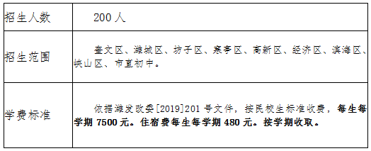 为做好2021年我校高中招生工作,根据潍坊市教育局《2021年市区初中学业水平考试及高中阶段学校招生录取工作实施方案》要求,结合我校实际,特制定本实施方案。一、招生计划与范围说明:我校是潍坊市首批“五