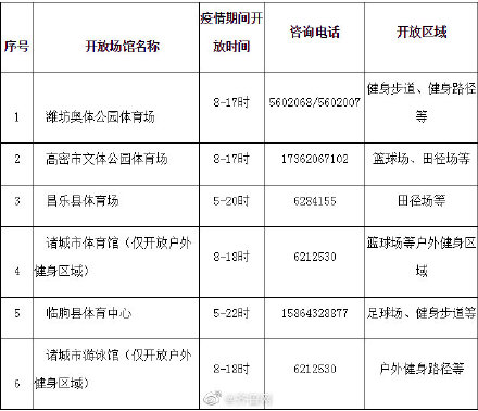 潍坊身边事【潍坊6处户外健身区域恢复开放】3月25日,为满足群众户外健身需求,根据潍坊市市疫情防控指挥部“全面开放室外公共场所”通知要求,潍坊市现有六处大型公共体育场馆通过采取人流管控和防止规模聚集措