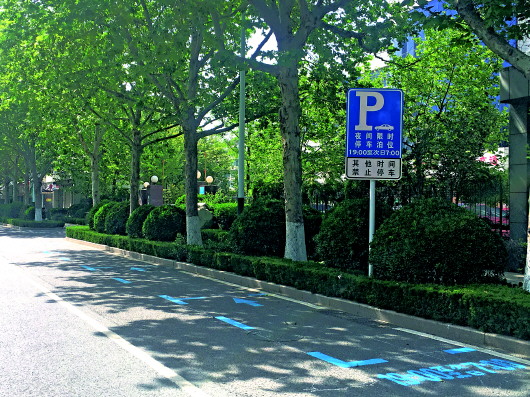 潍坊市委市政府大院的“限时免费停车”标示牌。记者 王文志 摄有些地方以“经营城市”之名,竞相把稀缺的空间资源推向市场进行变现,而山东潍坊市却敞开政府机关大门,带动商超广场、国企、民企一起,施划37万个