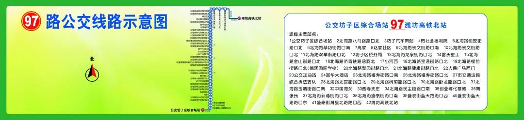 3月20日,潍坊97路公交线路(九马路—北海路—潍坊高铁北站)正式开通运行。作为坊子区综合场站试用以来开通的首条公交线,97路贯通北海路,将坊子区、奎文区、高新区、寒亭区连接起来,直通高铁北站。(点击