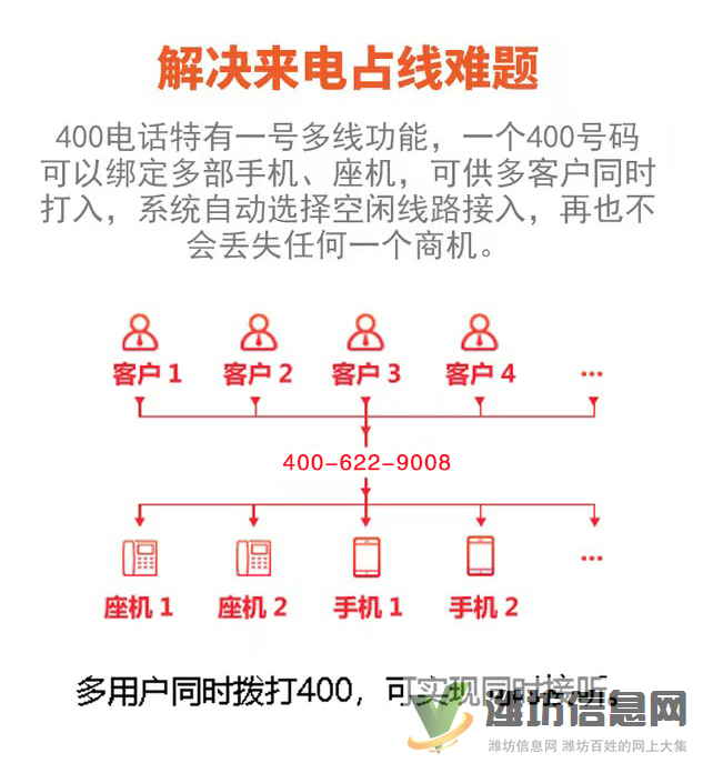 400电话特有一号多线功能,一个400号码